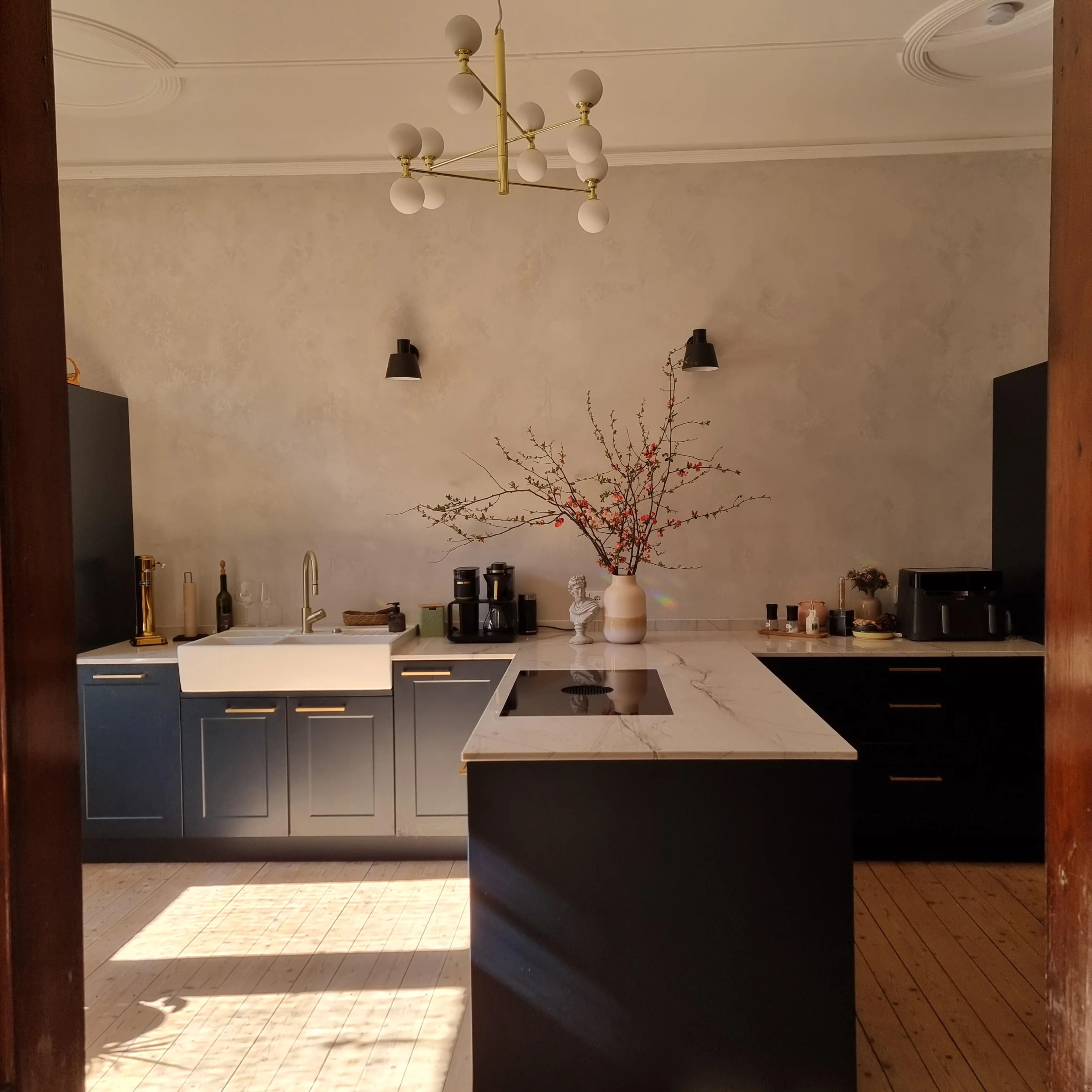 Viel. Ich weiß nicht, ob das nur bei uns so ist, aber es dreht sich eigentlich alles ums Essen. Man hangelt sich so von einem Essen zum nächsten. Dann wird noch ein Kaffee gemacht, meine Kaffeemaschine ist mir ja sehr heilig. Ich finde eine offene Küche ist mega kommunikativ und egal ob mit der Familie oder mit den Freunden und wenn man Esszimmer und Küche zusammen hat, verbinde ich das mit Freude.