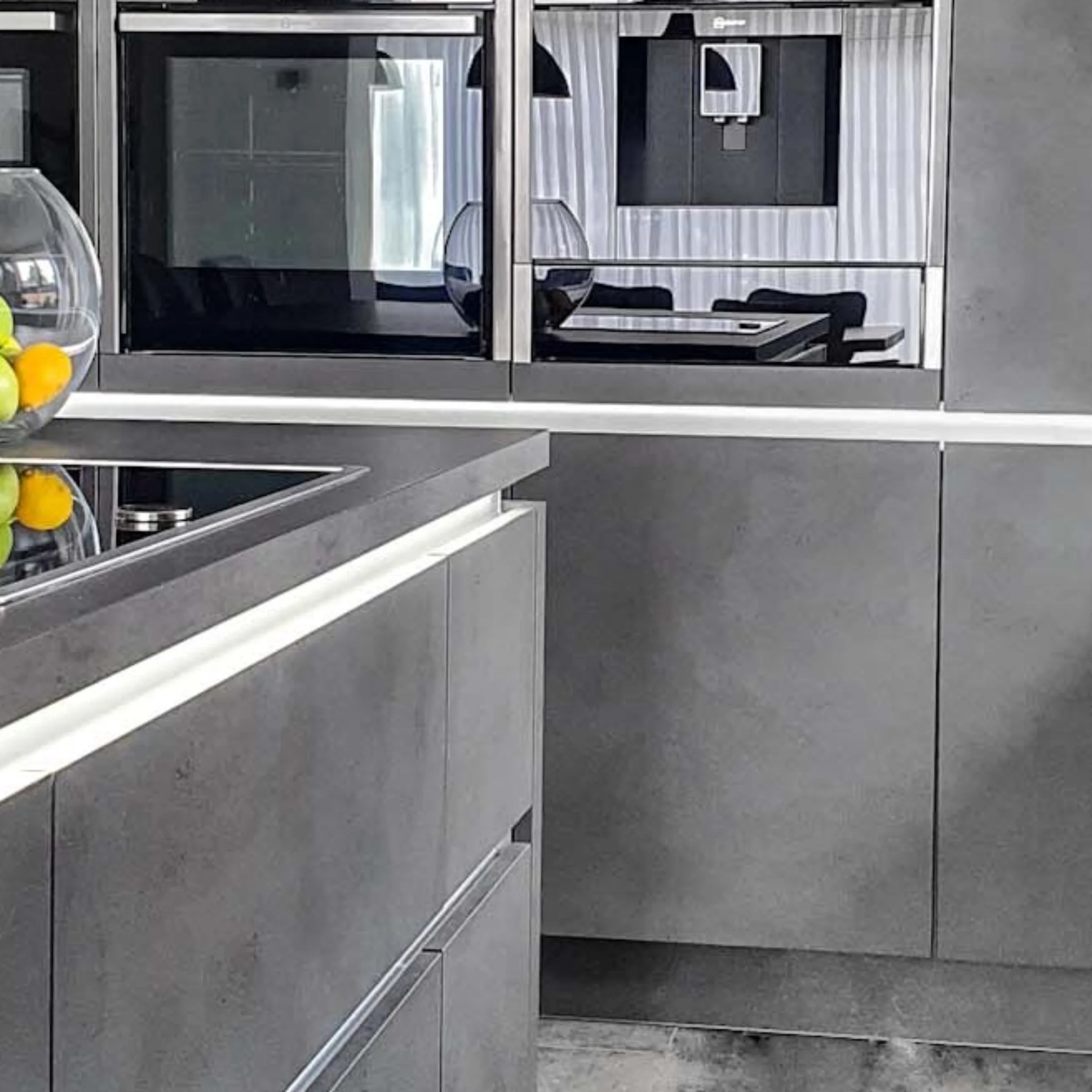 Ich habe die Küche zusammen mit einer Kollegin aus unserer Planungsabteilung geplant. Aber dadurch, dass ich bereits 3 Jahre bei Nolte Küchen tätig war, hatte ich genaue Vorstellungen wie die Küche aussehen soll. Das war wirklich, wie ich finde, super hilfreich. Die sonst so komplexe Küchenplanung war so also für mich fast schon wie im Handumdrehen erledigt. Auch wenn man in der Küchenbranche täglich dazu lernt, weil es so viele Details über die Küche zu Lernen gibt, hatte ich bereits ein gutes Wissen was ich bei meiner eigenen Planung anwenden konnte. Auch durch unsere Messen, Ausstellungsküchen und Fotomaterialien hatte ich viel Inspiration gesammelt, was mir bei der Planung half. Der geradlinige Aufbau der Küche war mit hier besonders wichtig, damit ein einheitliches Gesamtbild entsteht.