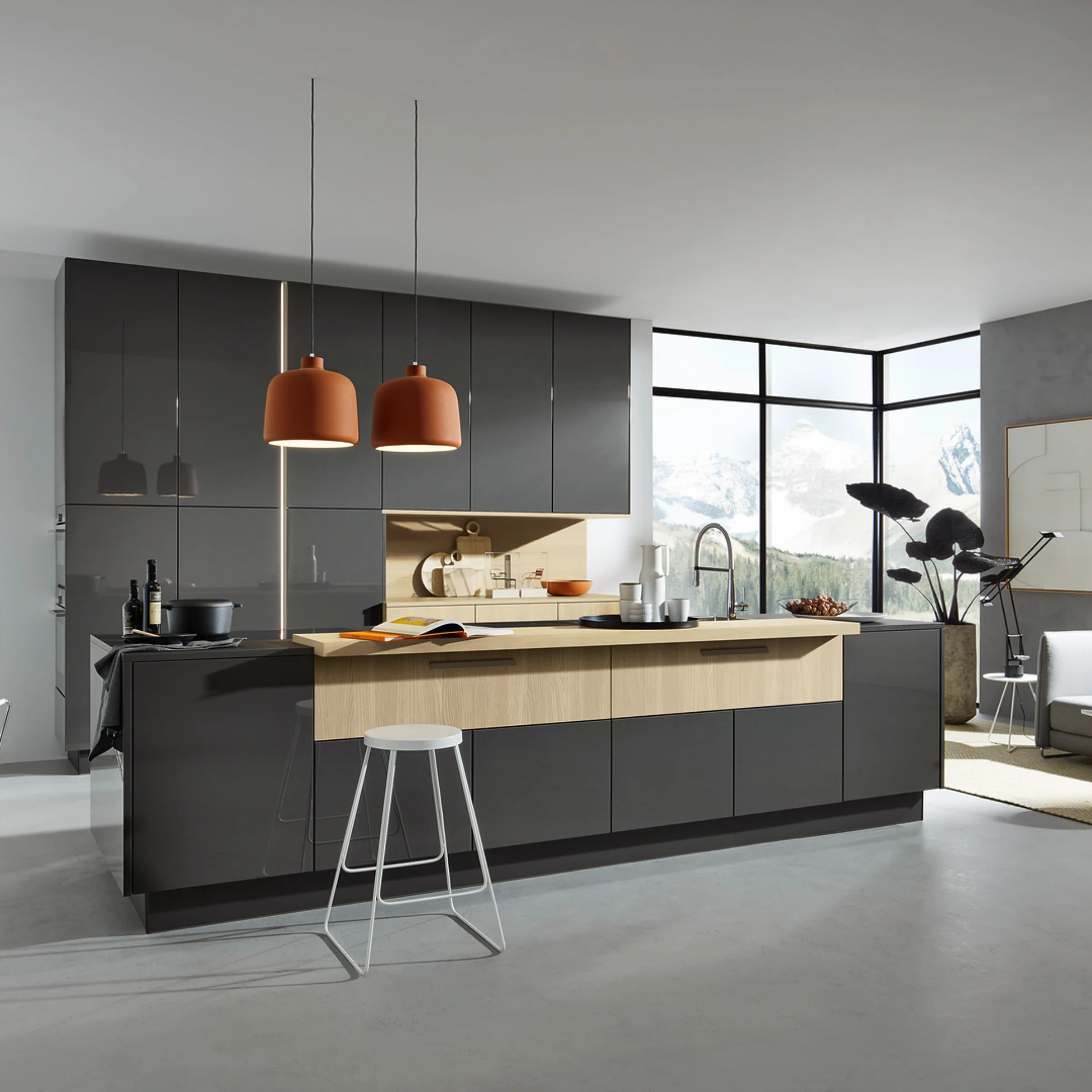 Matte kitchen fronts remain on trend—especially in combination with innovative anti-fingerprint surfaces. Programs such as VELLUTO, PERFECT PLUS or FLAIR combine an elegant look with high everyday practicality. Fingerprints are visibly reduced, and the kitchen stays neat and modern for longer.